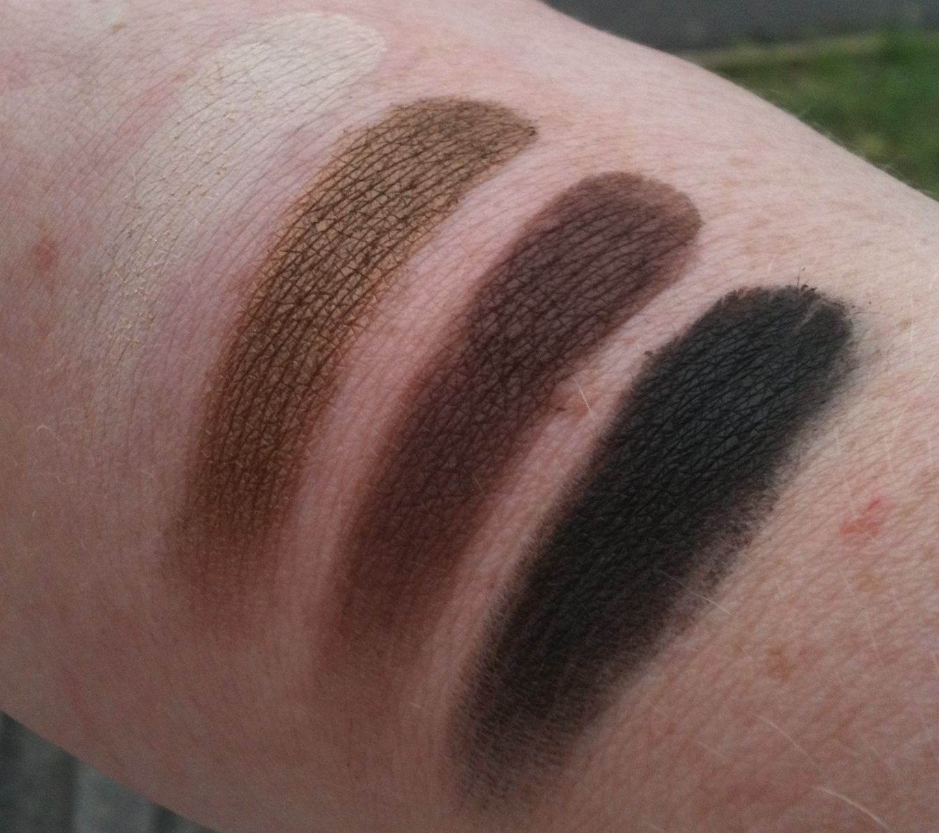 Illamasqua released two palettes with this collection, a palette of different textures/bright colours and a neutral palette. I'm not really a neutral person, but for some reason this made me bite. So, onto the Neutral Palette! The shades included in this palette are Stealth which is a creamy pale matte ivory, Vintage which is an intensly pigmented dirty old gold, Wolf which is a matte deep brown with a purple edge, and Obsidian which is a matte black. All of these shades are pigmented and buttery with the exception of Obsidian, the black, which has a slightly drier/stiffer texture. Each of these shadows is 1.5g.