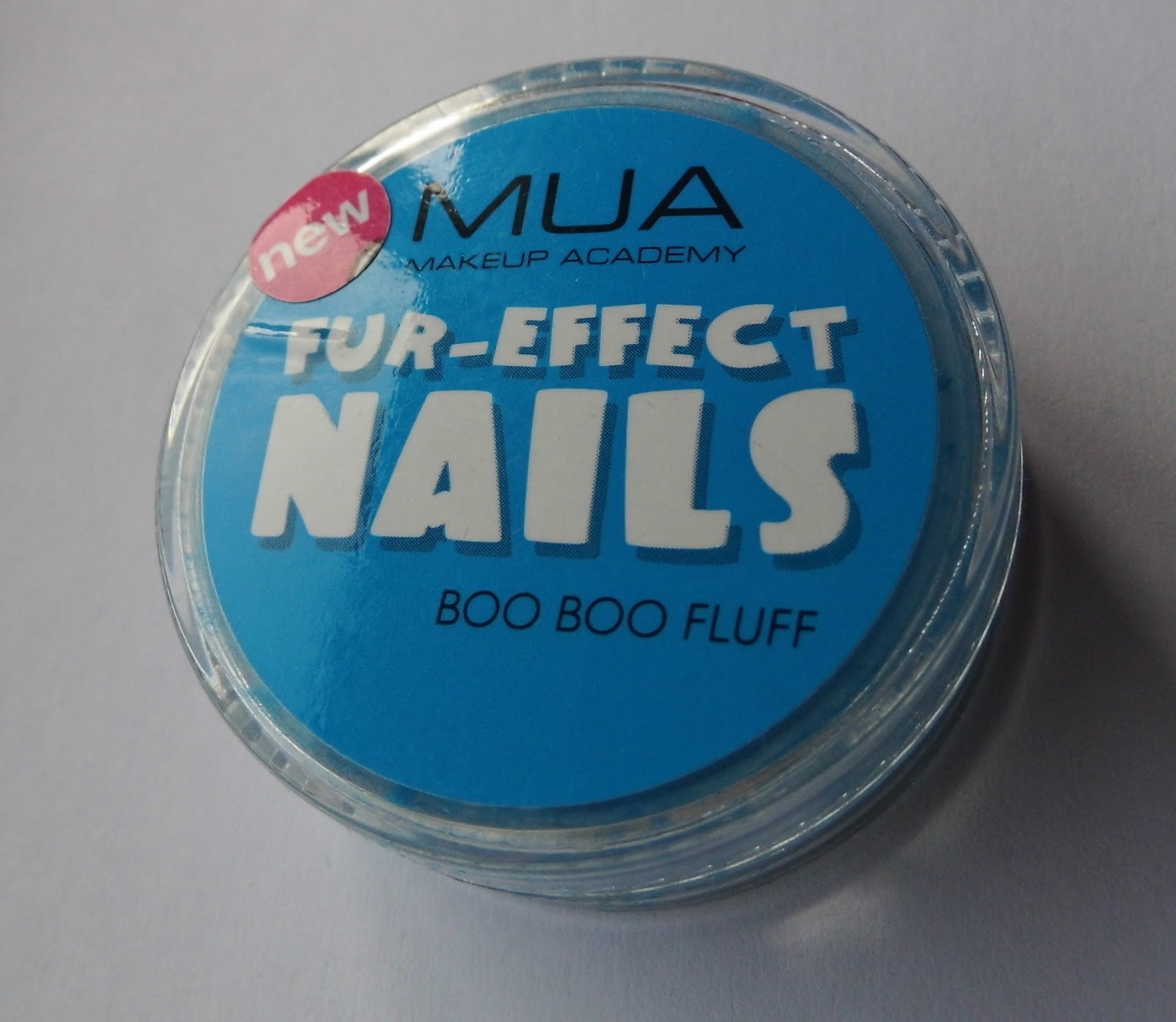 Anyway... I popped into Superdrug the other day for a butchers around and noticed that my local store has had a total revamp and the makeup and cosmetics isle is now much bigger and better. Beforehand, we used to have a little sort of cardboard stand for MUA products, we now have a proper cabinet thing (can't think of the word) just like major drugstore brands have. Obviously the range of MUA products I now have access to is much bigger. They've started stocking MUA's version of the Ciate Caviar Nails (though I've never been much of a fan of this mani) as well as the Fur Effects. Fur Effects are basically flock - I've worn flock nails once before using some flock I'd bought off eBay and it lasted about 3 days before most of it had worn off. It's an interesting look, but I am a bit of a fan of the flock/fur mani.